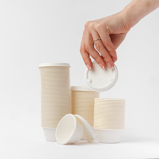 Sosjerka z trzciny cukrowej z pokrywką plastikową 80ml (100 szt/opakowanie)